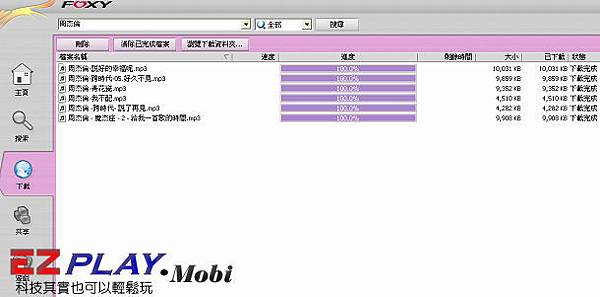 FOXY軟體功能超強,搜尋快下戴速度快,由其是MP3檔案下面圖示是我下戴歌曲,打入您要歌手或歌名按搜尋,就會出現相關歌曲後按下戴即可,是滿不錯地休閒娛樂平台。