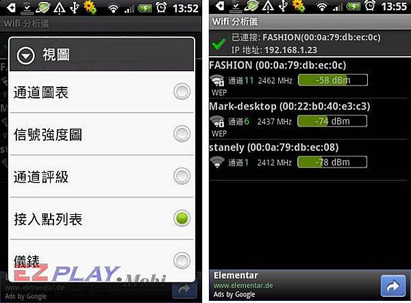 Android Market 裡頭有個「WiFi分析儀」,用起來