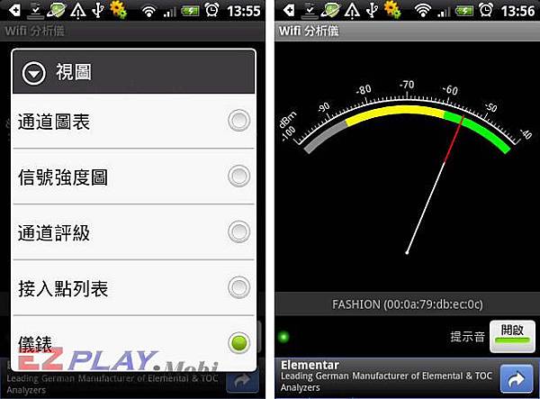 您可以到 Android Market 找到並安裝「WiFi分析儀」這個軟體。