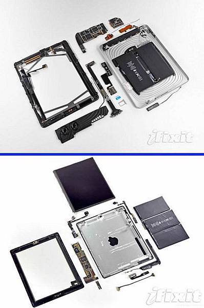 上圖則是摘錄自 iFixit 網站 iPad 與 iPad2 內部元件展開圖,