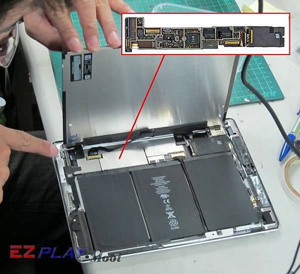 再次看看 iPad2 的精簡結構,右上角就是 iPad2 的電路板,相對於 iPad 第一代,