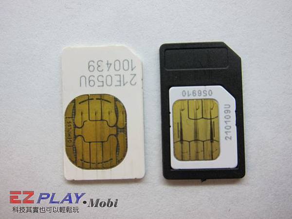 左為正常卡,右為已裝上轉卡器的micro SIM卡(俗稱小卡)