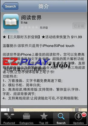首先在App store搜尋輸入 reading woading或打閱讀世界,搜索到敲擊安裝軟體