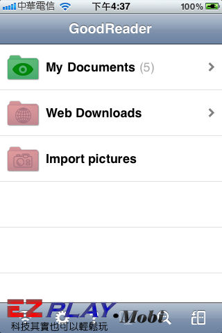 先找GoodReager軟體後安裝執行,進入會看到幾個預設資料夾,因沒傳送檔案資料所以沒文件。