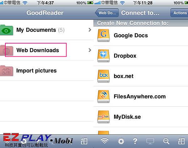 此軟體提供三種傳輸資料檔案方式( iTunes,WiFi,Web download網路雲端 )同步