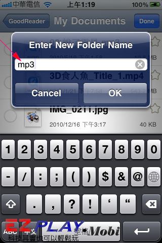 也可將設立資料夾來管理不同檔案格式,點選[New Folder]後輸入資料夾名稱,畫面就出現建立好資料夾。