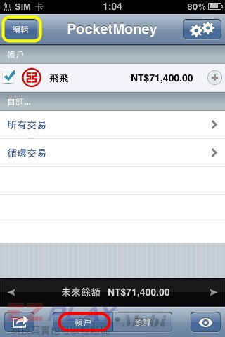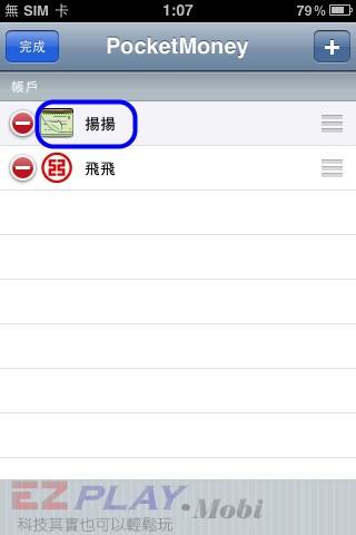 (畫面中原就已有一個「帳戶」,這是我之前建立的)