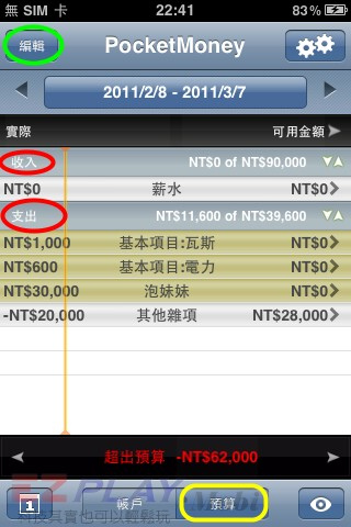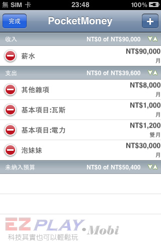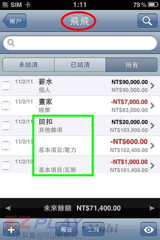 回到「飛飛」的帳戶,我們看到之前列入的預算
