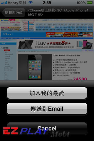 也可以把喜歡地商品加入我的最愛,或傳送到Email也可以