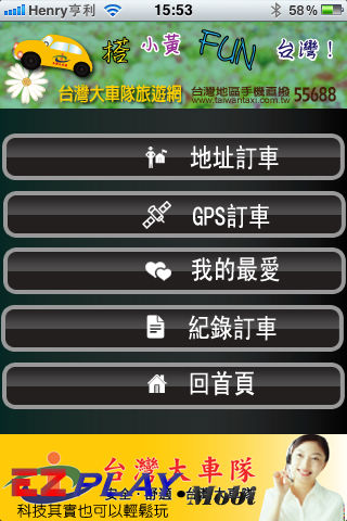 回到首頁有個「55688叫車」,直接撥號叫車,像一般手機直撥方式一樣。