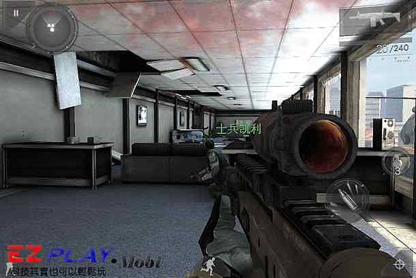 跟著隊友進入大樓內,要隨時注意敵人從角落跑出來射殺啊!