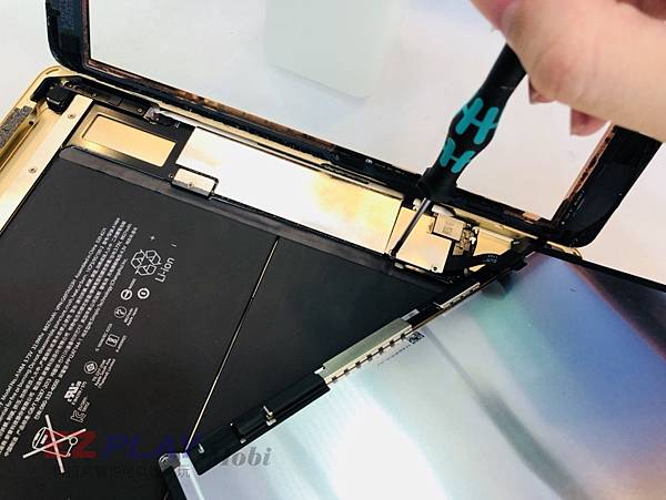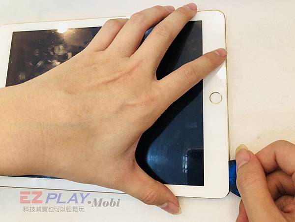將APPLE iPad 5的觸控面板與背蓋分離中。