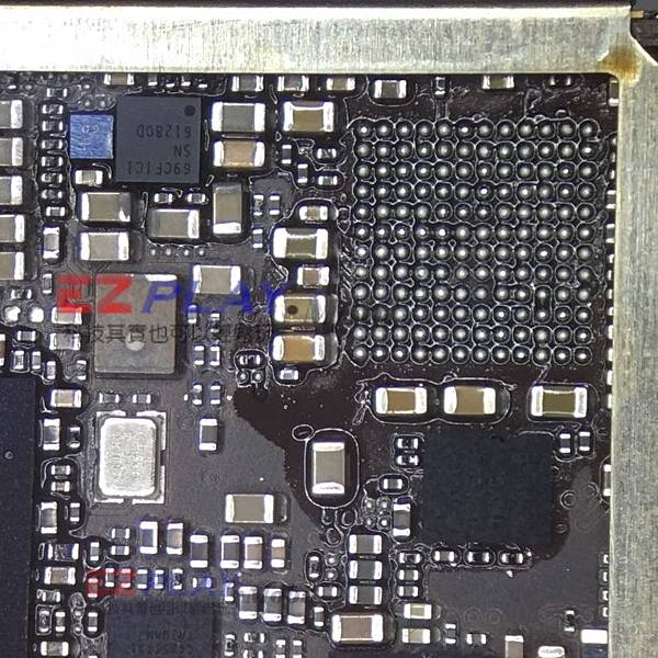 所以奉勸大家手機能不摔就別摔,像上圖機板這一小區,就有7顆BGA IC零件,只要有外力就會有機會讓手機機板損壞,既然手機機板線路己經損壞,那就只能維修機板囉!