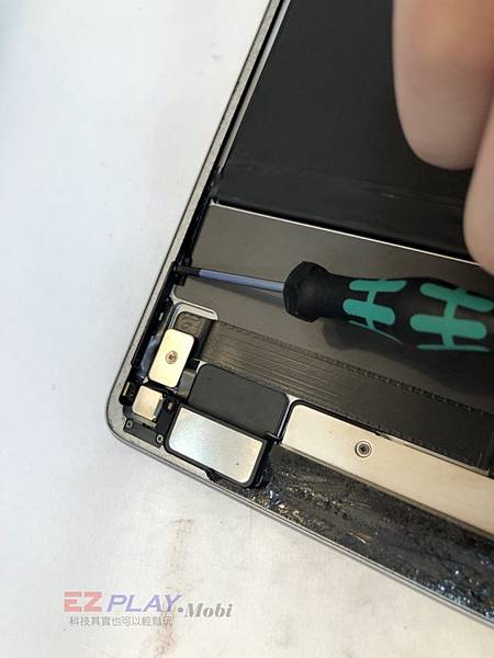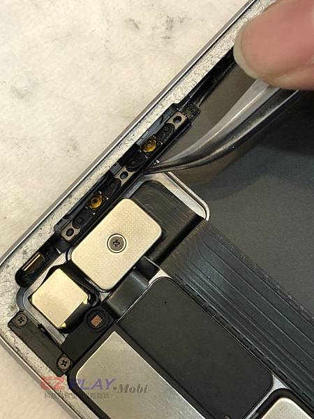 接著往IPAD PRO內部鬆開按鍵架螺絲,是否有明顯問題!