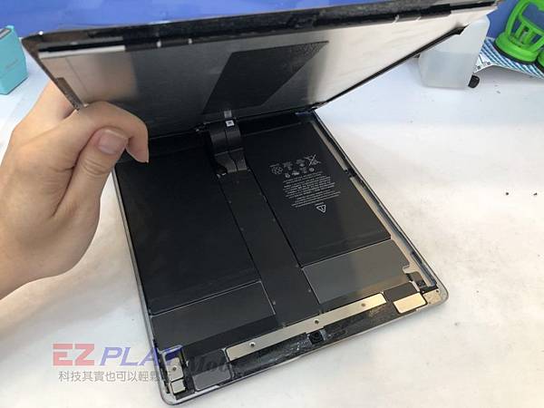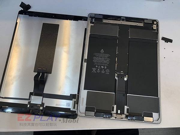 拆起IPAD PRO螢幕後,就清楚看到了電池/主機板/天線/響鈴等等零件模組!