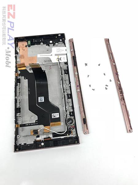 SONY XA1 ULTRA 拆解更換面板需要把所有的螺絲都卸下來,因為它主要是用卡榫式的,雖然面板上下都有黏膠的過程,這時候也把左右螺絲也拆解下來。