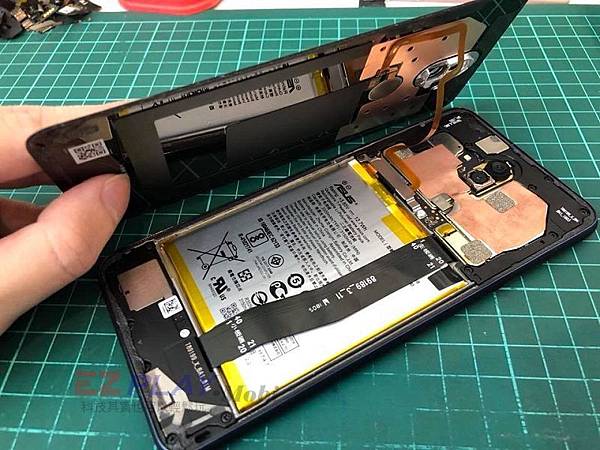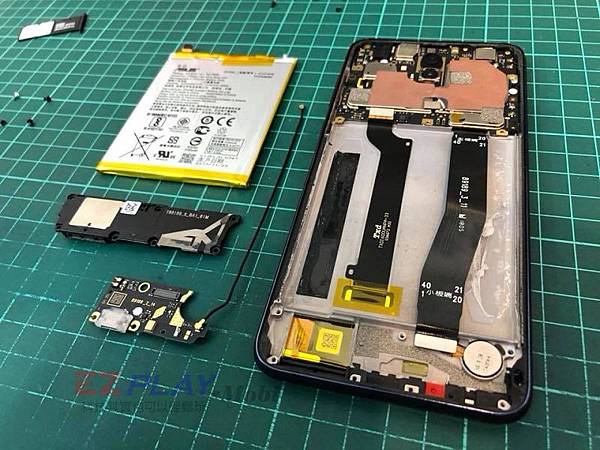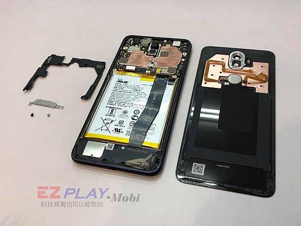 手機內部設計跟Zenfone3很像,看起來維修難度並不高。