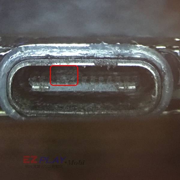 取下充電小板後,我們為了探索為何更換充電線還不能充電,檢視了一下充電小板上的充電孔,發現就如同上面紅框所示,充電孔內的接點也因為線路短路問題被燒的焦糊糊的,所以我們只要更換小板上的充電孔就行了嗎? 小編很殘酷的告訴大家,事情不是你想的那麼簡單,來~我們再看下去⋯⋯