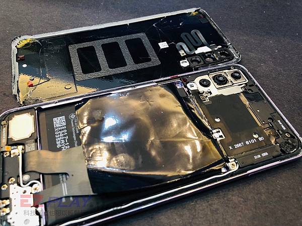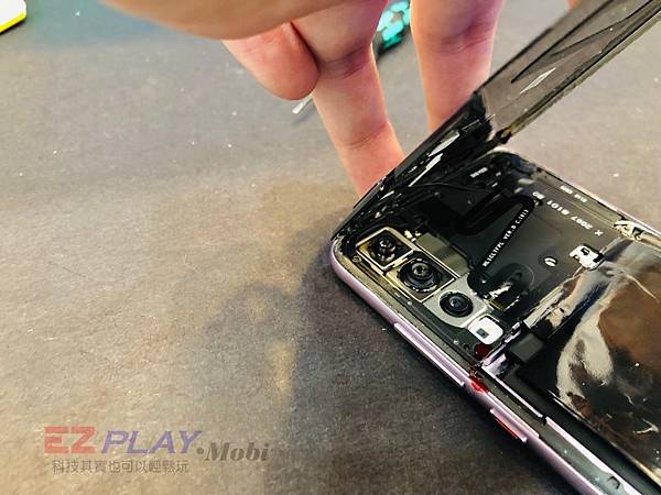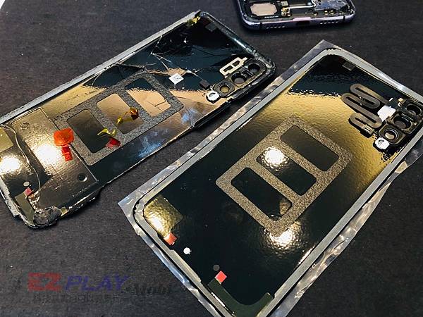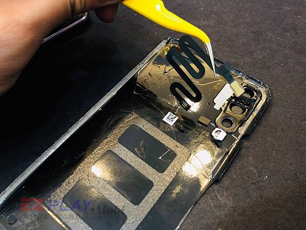 拆開HUAWEI P20 PRO玻璃背蓋後發現排線連接著。