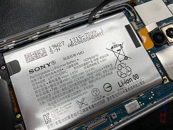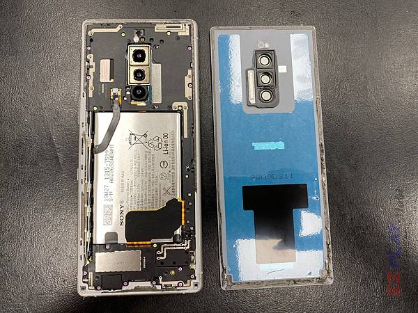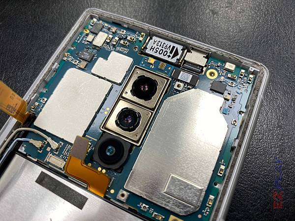拆下Sony Xperia 1蓋板後,可以看見主機板的部分還有BIONZ X for mobile 技術三鏡頭。