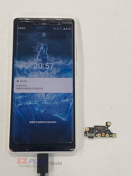 現在nokia維修都算簡單了,都是模組化,我們就把尾插模組給換上去測試充電,沒有問題就可以把機子組裝回去囉。